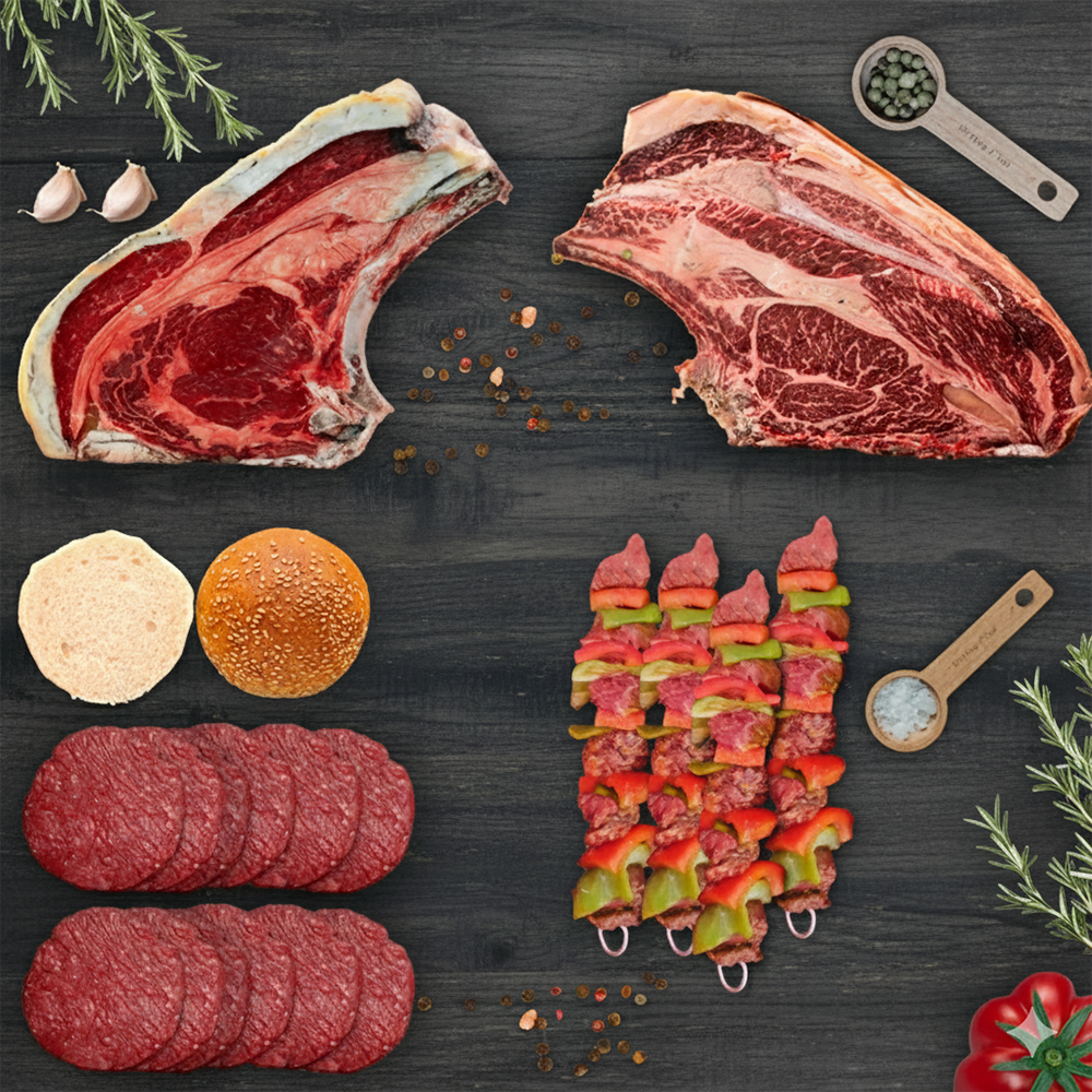 Este pack combina lo mejor de la carne madurada y de raza premium, ideal para preparar una barbacoa gourmet, una cena especial o una degustación entre amigos.